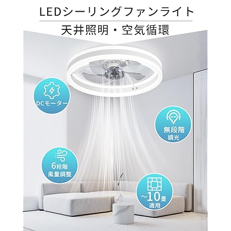 • LEDシーリングファンライト キュレーター付き 8~10畳 調色/調光/風量調整 DCモーター天井扇 最大5200LM ファン正逆回転 タイマー機能 節電 省エネ 寝室 和室 天井照明 空気循環 リモコン/説明書付 Φ50CM