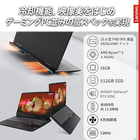Thương hiệu Lenovo là cái tên nổi tiếng được rất nhiều khách hàng trên thế giới chọn lựa. Với kiểu dáng đẹp mắt, sang trọng, sản phẩm Lenovo ノートパソコン IdeaPad Gaming 370 15.6インチ GeForce RTX 2050 Ryzen 5 7535HS メモリ16GB SSD512GB MS Office 2021搭載 Windows11 バッテリー駆動13.8時間 重量2.32kg グレー 82SB00PTJP là sự lựa chọn hoàn hảo nếu bạn đang tìm mua một món cho riêng mình.