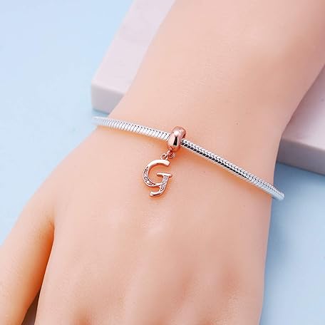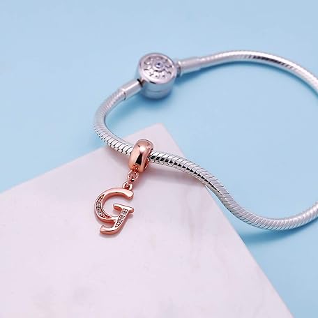 Thông tin sản phẩm Letter Charm Rose Gold 925 Sterling Silver Alphabet Initial Crystal Dangle Bead Pandora Bracelet Mother Christmas Gift, Silver, Cubic Zirconia