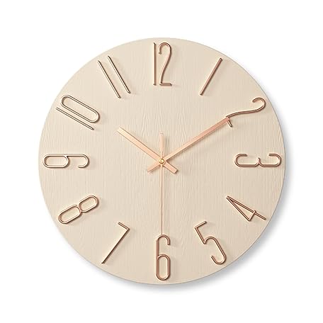 Lezalic Wall Clock, Simple, Scandinavian Style, Interior, Analog, Wall Clock, Silent, Living Room, Office, Bedroom (White Beige)