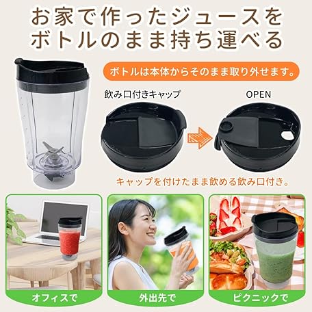 • life_mart Blender, Crushing Ice, 15.9 fl oz (450 ml), Easy to Drink As It Is , Smoothie Juicer, Small, Bottle Blender, Mini Blender, 15.2 fl oz (450 ml), Includes Recipe Book, Easy to Clean, Compact