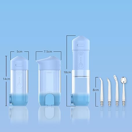 Thông tin sản phẩm Lightweight Oral Washer, Jet Washer, Portable, 8 Replacement Nozzles, Compact, Portable, IPX7 Waterproof, USB Rechargeable, 200ML Tank, 3 Levels of Water Pressure Adjustment, S1 (Blue)