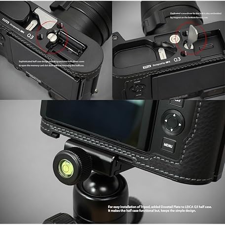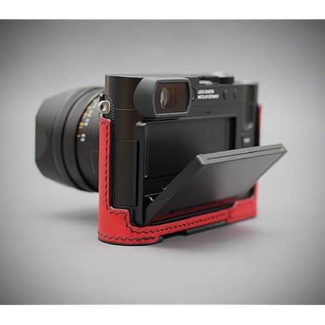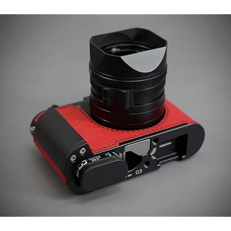 • LIM'S 本革イタリア製カメラハーフケース メタルグリップ ダブテールプレート ハンドメイド Leica Q3 Q3 43用 [パパベロレッド]