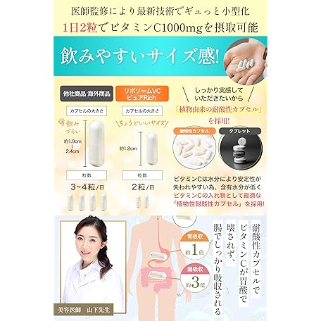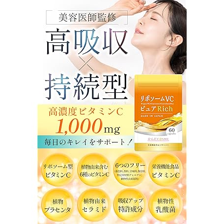 Sản phẩm Liposome Vitamin C (Supervised by Beauty Doctor), Patent Ingredients, High Absorption x Sustainable, 6 Types of Vitamins, Acid-resistant Plant Capsules, Nutritional Functional Food, Plant Placenta đang được bán với giá ưu đãi là $14.3989 tại nước Nhật.