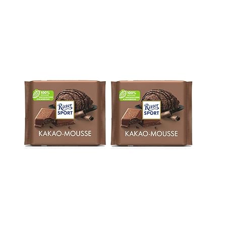 Litter Sports Cocoa Mousse Chocolate 3.5 oz (100 g) x 2 Packs, Made in Germany with Rich Cocoa Mousse Milk Chocolate, Low Sweetness