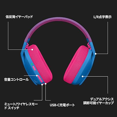 Thông tin sản phẩm Logicool G G435 Gaming Headset, LIGHTSPEED & Bluetooth, Wireless Headset, Lightweight, 5.8 oz (165 g), Built-in Microphone, 18 Hours of Continuous Use, USB Dongle, Dolby Atmos Compatible, Headphones, PC, PS4, PS5, Smartphone Compatible, G435BL, Authentic Japanese Product