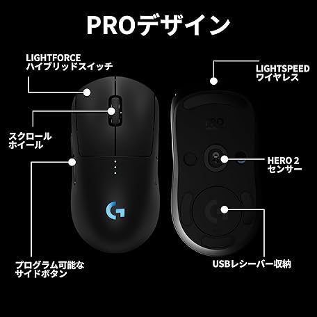 • Logicool G PRO 2 LIGHTSPEED 44K DPI Wireless Gaming Mouse, G-PPD-002XWL-BK, Lightweight, 2.8 oz (80 g), LIGHTFORCE Hybrid Switch, HERO2 Sensor, USB Type-C 95 Hours of Continuous Usage, POWERPLAY