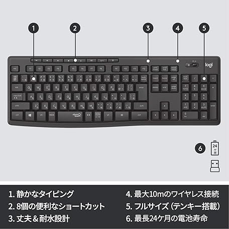 Thông tin sản phẩm Logicool K295GP Wireless Keyboard, Quiet, Water resistant, Wireless, Unifying, Windows, Chrome, Graphite, Made in Japan