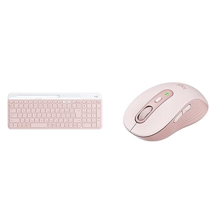 Logicool K580RO Quiet Bluetooth Wireless Keyboard, Rose, Ultra-thin, Small, Unifying Numeric Keypad + Signature M750MRO Wireless Mouse, Quiet, Regular Rose, Bluetooth Logi Bolt Not Compatible with