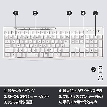 Thông tin sản phẩm Logitech MK295OW Wireless Mouse and Keyboard Set, Silent, Water Resistant, Wireless, USB Connection, Non-Unifying, Off-White, Domestic Genuine Product