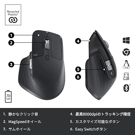 Sản phẩm Logitech MX Master3s MX2300GR Advanced Wireless Mouse, Silent, Logi Bolt, Bluetooth Not Unifying, 8000 dpi, High Speed Scroll Wheel, USB-C Rechargeable, Wireless, MX2300, Graphite, Genuine Product in đang được bán với giá ưu đãi là $86.1863 tại nước Nhật.