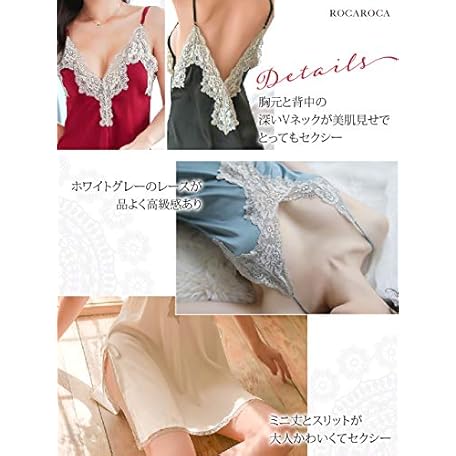• LOKALOKA Sexy Lingerie Deep V Babydoll Satin Slip Camisole Slit Lace