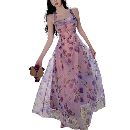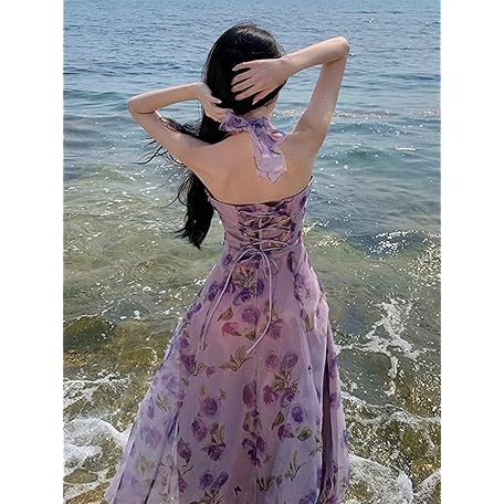• Lolita Kawaii Dress Sleeveless Strap Midi Dress Summer Beach Floral Dress Women Even Party One Piece Elegant Sweet Dress