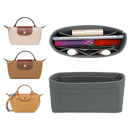 LOUKAYCCI Felt Mini Organizer Insert for Longchamp Mini XS Bag, Handbag Organizer Insert for Handbags (Light Gray)