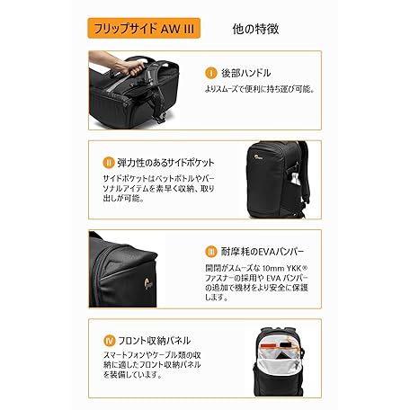 • ロープロ(Lowepro) カメラリュック フリップサイド AW III バックパック アウトドア仕様 取り外し可能アクセサリーポーチ・オールウェザーカバー付属