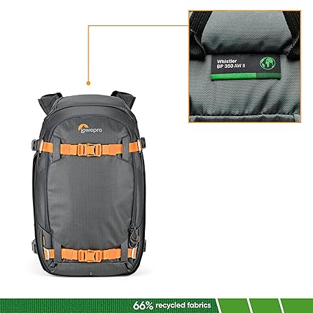 Thông tin sản phẩm ロープロ(Lowepro) カメラリュック ウィスラー BP450AW II バックパック GRL サステナブル素材採用グリーンラインシリーズ スキー スノーボード取付可 三脚取付可 撥水加工 レインカバー付属 15インチPC収納可 26.0L