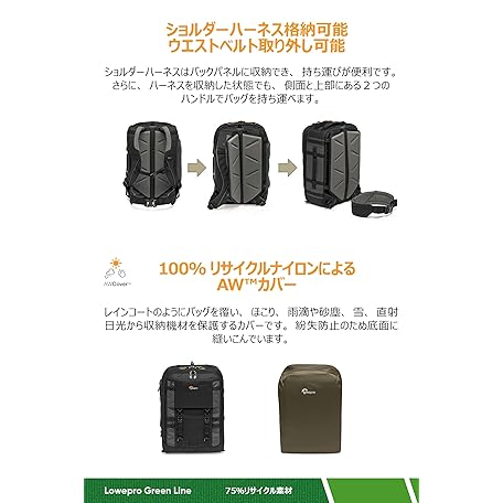 Sản phẩm ロープロ(Lowepro) カメラリュック プロトレッカー BP450AWIIGRL サステナブル素材採用グリーンラインシリーズ 三脚取付可 15インチPC収納可 10インチタブレット収納可 レインカバー付属 23.5L LP37269-GRL đang được bán với giá ưu đãi là $243.5605 tại nước Nhật.