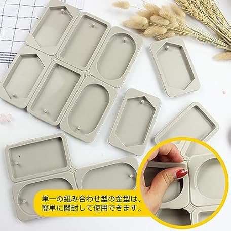 LOYELEY シリコンモールド 楕円 六角 六角形 長方形 穴あき 通し穴 アロマストーン アロマワックスバー サシェ 石鹸 キャンドル 石膏 樹脂 粘土型 抜き型
