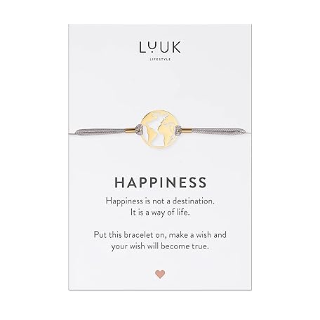 LUUK LIFESTYLE Filigree Bracelet with Heart | Life Tree | Infinity | Anchor | Mandala | Flower Pendant and Happiness Greeting Card | Lucky Charm | Trendy Fashion Gift | Textile Band Beige Pink Black