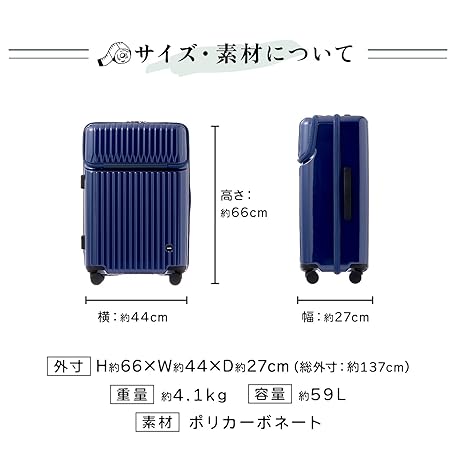 Sản phẩm [エース] スーツケース フロントポケット キャスターストッパー キャリーケース タッシェ ブルー Mサイズ đang được bán với giá ưu đãi là $206.1517 tại nước Nhật.