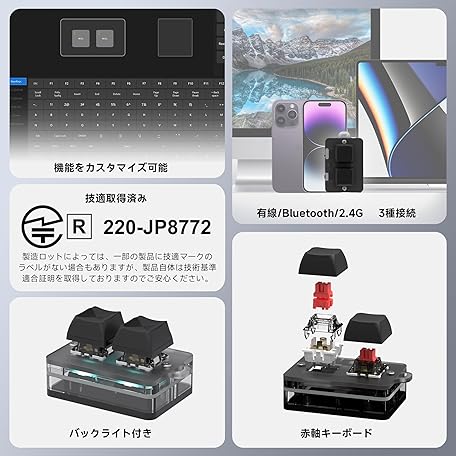 Sản phẩm Macro Keyboard, Programmable Keyboard, 3 Connections, Wired/Bluetooth/2.4G Wireless Connection, 2 Keys, One-Handed Keyboard, Shortcut Keyboard, Mechanical Keyboard, Red Axis, RGB Backlight, đang được bán với giá ưu đãi là $21.5493 tại nước Nhật.