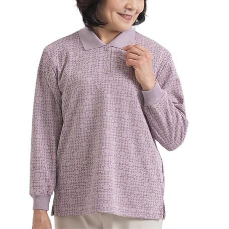 (Made in Japan) Puffy Jacquard Polo Shirt, Senior Fashion, Geometric Pattern, Japanese Pattern, Loose, Loungewear, Home Wear, Stretchable, Grandma 70s, 80s, Respect for the Aged Day