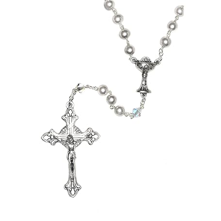 最初聖体拝領ロザリオMade withホワイト真珠色スワロフスキークリスタル要素