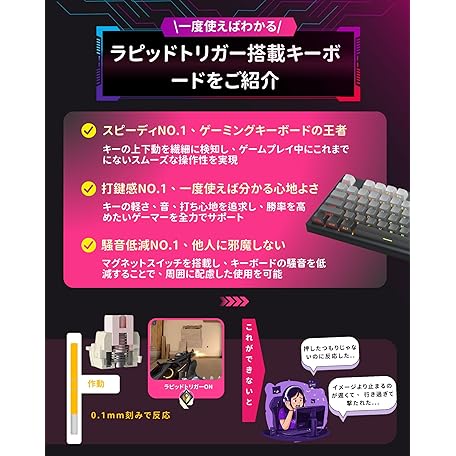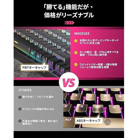 Thông tin sản phẩm MageGee ラピッドトリガー キーボード | ゲーミングキーボード ラピッドトリガー | CNCアルミフレーム、RGB 有線 USB コンパクトゲーミング用 メカニカルキーボード