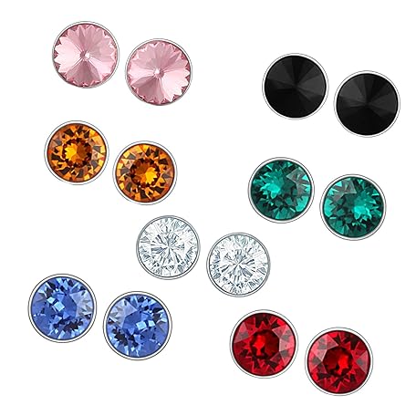 Mahi ビッグガールズ ロジウムメッキ 7つのスタッドピアス スワロフスキークリスタル付き