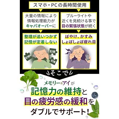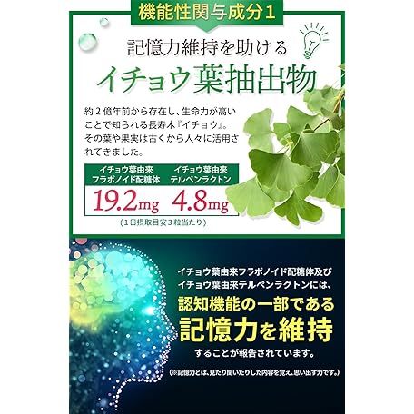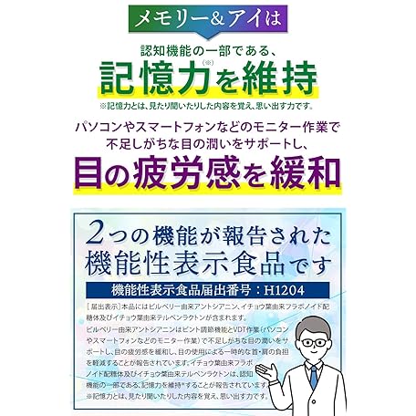 Thông tin sản phẩm Maintains Memory, Relieves Eye Fatigue, Works at W Ginkgo Biloba Supplement, Memory and Eye Bilberry Formulation, Food with Functional Display, 90 Tablets, Approx. 1 Month Supply