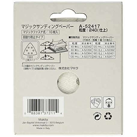 Thông tin sản phẩm Makita A-52417 Magic Sanding Paper 240, 3.8 x 3.8 inches (96 x 96 mm), White, Triangular (10 Pack)