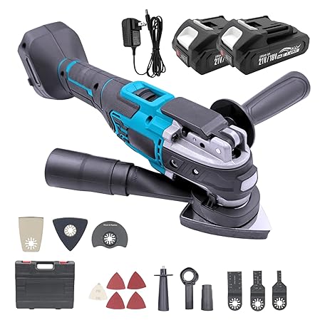 Makita Compatible Multi-Tool, Rechargeable, 18 V Batteries, 2 x Charger Set, Starlock OIS Compatible, Brushless Motor, Vibration Adjustment, Dust Collecting Function, LED Work Light, DIY Longsafe