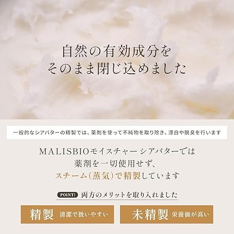 Thông tin sản phẩm MALISBIO シアバター オーガニック 無香料 ボディクリーム ヘアワックス スキンケア リップケア ネイルケア ヘアケア 精製 85g