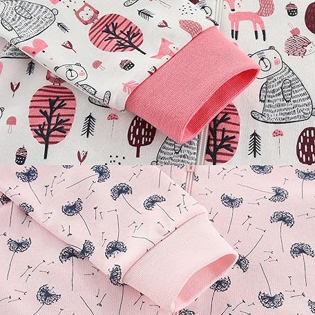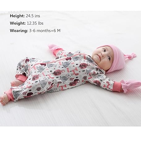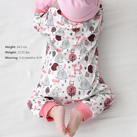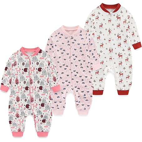 Thông tin sản phẩm MAMIMAKA Coveralls, Newborn, Long Sleeve, Baby Clothes, Zippered Pajamas, Front Opening, Baby Shower, 0-24 Months/60-110 cm, Pink Animal + Pink Dandelion + Red Deer