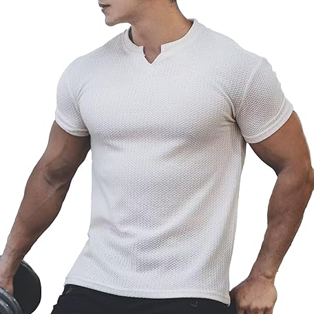 Manatsulife DX235 Men's T-Shirt, Short Sleeve, Training Gym, Knit, Stretch, V-Neck, Breathable, Thin, Lightweight, Sweat Absorbent, Waffle, Summer Clothes, Loungewear, Casual, white, M