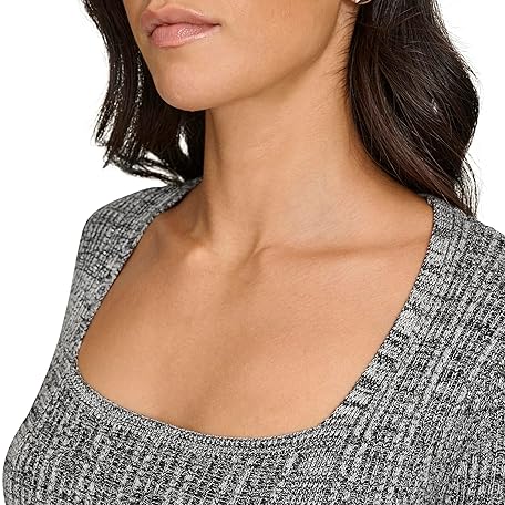 • [カルバン クライン] トレーナー Marled Metallic Square Neck Sweater レディース メタリック、グレー