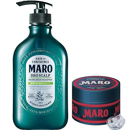 MARO Men's Medicated DeoScalp Shampoo, Quasi Drug, 16.2 fl oz (480 ml) + Perfect Styling Gel (Hard) 2.8 oz (80 g), Marlo Styling Wax