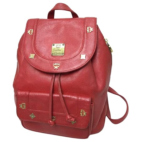 Mc Logo Plate Town Youth Town Rucksack Backpack Rucksack Leather Women's Used, red