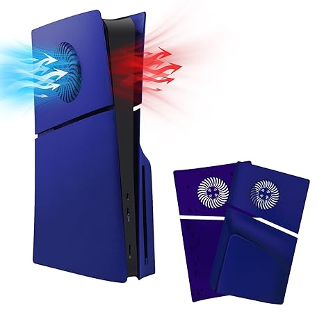 Mcbazel New PS5 Slim Replacement Faceplate with Cooling Vent Heat Dissipation Anti-Scratch Protective Case Cover for PS5 Slim Disc Only - Blue