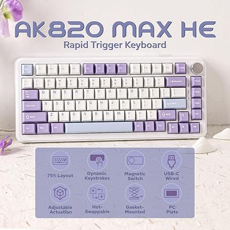 Thông tin sản phẩm MechLands AJAZZ AK820 MAX HE Rapid Trigger Keyboard Wired Wireless Gaming Keyboard Hall Effect Gasket Mechanical Keyboard Adjustable Actuation Magnetic Switch RGB for Win/Mac (White, Wired)