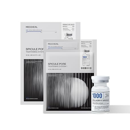 MEDIHEAL OFFICIAL Spicule Pore Elasticity System 1, 4 Sheets, Ampoule 1000, Includes Spicule Pore Tightening System 1, 4 Pieces, Korean Pack, Hari, Kimecare, Collagen Mask, Skin Care (System1 (1000))
