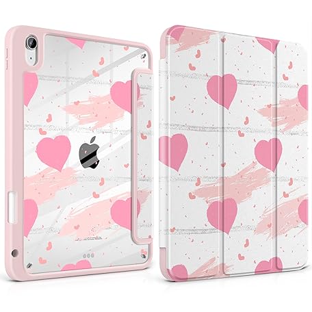 • MEEgoodo iPad Air 11インチ M3 2025 / M2 2024用ケース iPad Air 第5世代/第4世代ケース 10.9インチ 2022/2020用 アクリル透明バックシェル付きタブレットカバー 水彩ハート グランジ要素