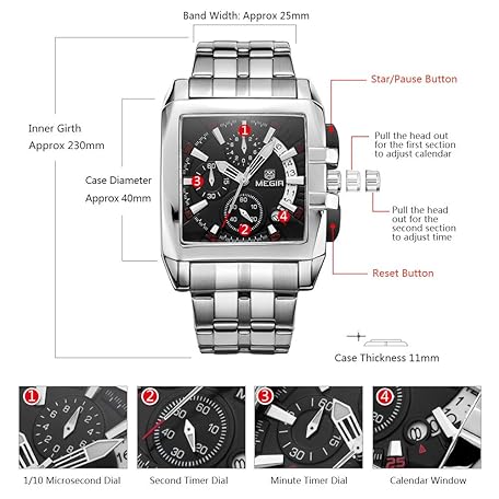Sản phẩm Megir メンズビジネスステンレススチールストラップ クロノグラフ 夜光アナログクォーツウォッチ カレンダー付き ブラック đang được bán với giá ưu đãi là $62.893 tại nước Nhật.
