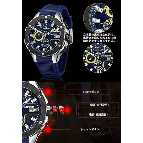 Sản phẩm [MEGIR]腕時計 メンズ クォーツ 多針アナログ クロノグラフ 日付 ステンレス シリコン ブルー オシャレ シンプル ファッション 父の日 誕生日プレゼント かっこいい ストップウォッチ đang được bán với giá ưu đãi là $49.704 tại nước Nhật.