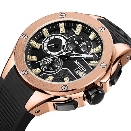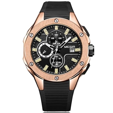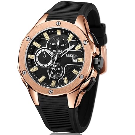 Sản phẩm MEGIR Men's Military Sport Watch Fashion Silicone Strap Wrist Watch Luxury Waterproof Luminous Chronograph Quartz Watch for Men Rose Gold, rose gold đang được bán với giá ưu đãi là 0 tại nước Nhật.