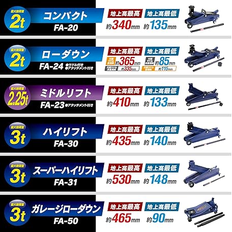 Sản phẩm Meltec FA-24 Hydraulic Floor Jack, 2 t, Low Down, Max/Min Raise Height, 13.2 (14.4) inches/3.3 (4.5 inches) (335 (365 mm)/85 (115 mm)), Saddle (1.2 inches (30 mm UP) Included đang được bán với giá ưu đãi là $56.4838 tại nước Nhật.