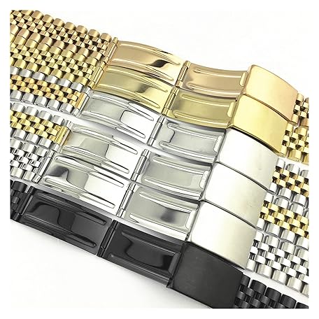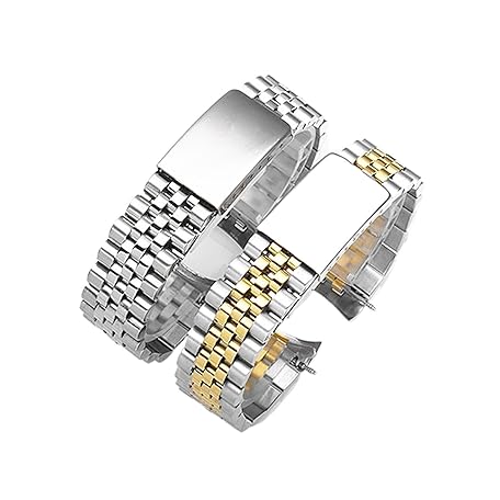 Meng Meng ロレックスのためのCUVED端のストラップ デイトジュスト時計ブレスレットバンドソリッドステンレス鋼のリストバンド13mm 17mm 18mm 19mm 20mm 22mm 22mmバンド (Band Color : Silver gold logo, Band Width : 17mm)