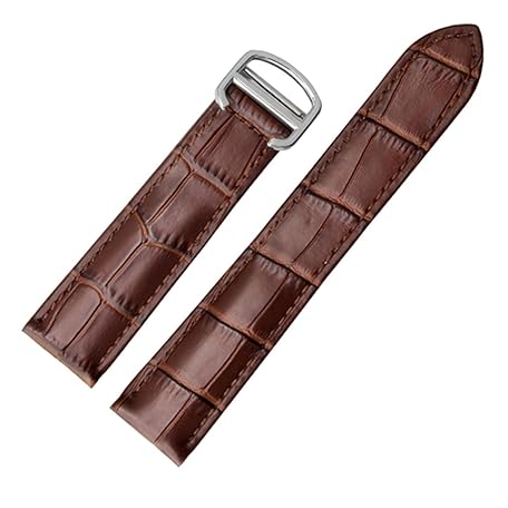 Meng Meng Watch Band Genuine Leather Watch Strap 18/20/22mm Bracelet Fit Men/Women Watch Watch Fit Cartier Tank Solo (Band Color: Brown Silver, Band Width: 14mm)