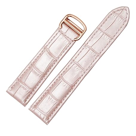 Meng Meng Watch Band Genuine Leather Watch Strap 18/20/22mm Bracelet Fit Men/Women Watch Watch Fit Cartier Tank Solo (Band Color : Pink rose gold, Band Width : 14mm)