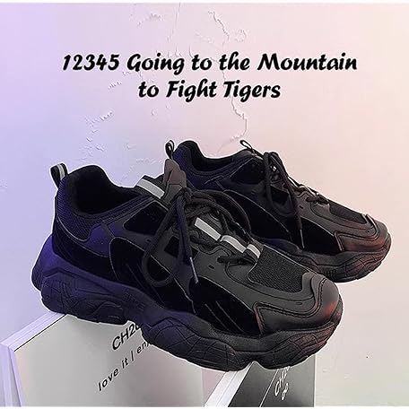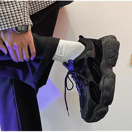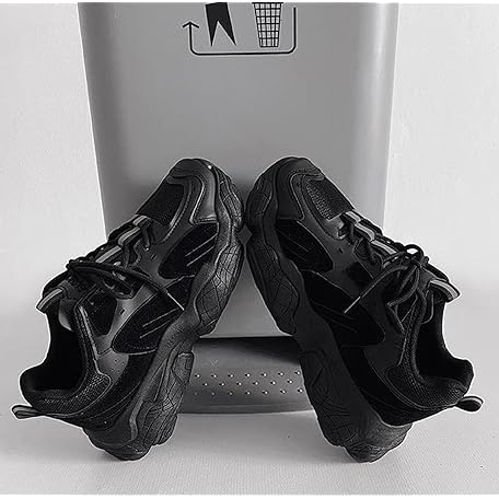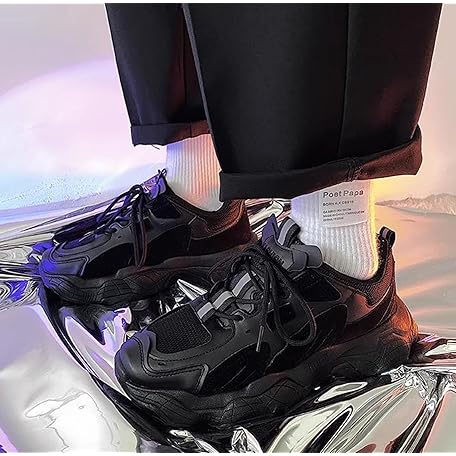 • MengFan Men's Thick Sole Sneakers, Running Shoes, Sports Shoes, Sports with Reflective Tape, Dad Sneakers, Casual Shoes, Shoes, Sneakers, Beautiful Legs, Black